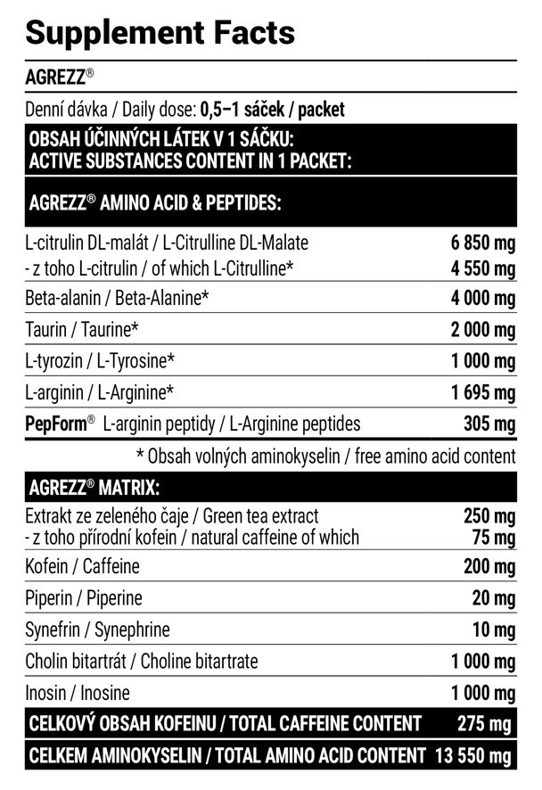¡La mayoría de los preentrenos no tiene un buen sabor, a la diferencia de AGREZZ®! Gracias a muchos años de experiencia en la aromatización de suplementos, hemos afinado todos los sabores hasta alcanzar la perfección absoluta. Dado el alto contenido y tipo de sustancias activas, ¡es completamente único!
