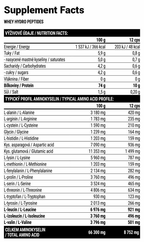 WHEY HYDRO PEPTIDES contiene uno spettro completo di amminoacidi essenziali e non essenziali in legami peptidici. La fonte dei peptidi è l’idrolizzato premium DH 32. L’elevato grado di idrolisi garantisce uno stress digestivo minimo e una migliora disponibilità degli amminoacidi. L’origine europea della materia prima garantisce la massima qualità e purezza.